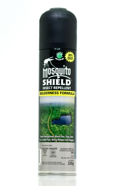 Mosquito Shield Insect Repellent is for the hardcore outdoorsman looking for maximum protection and durability. 30% DEET with 8-hour protection. Formulated with aloe vera for added skin comfort. Repels mosquitoes, black flies, deer flies, stable flies, ticks, bitting midges and chiggers.